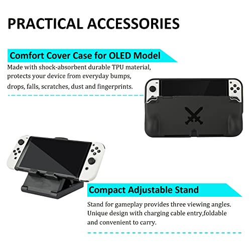 Specification: Accessories Bundle for Nintendo Switch OLED Model(2021): Super Kit with Carrying Case, Screen Protector, Steering Wheels, Joycon Grips, Charging Dock, Playstand, Protective case and More (23 in 1)